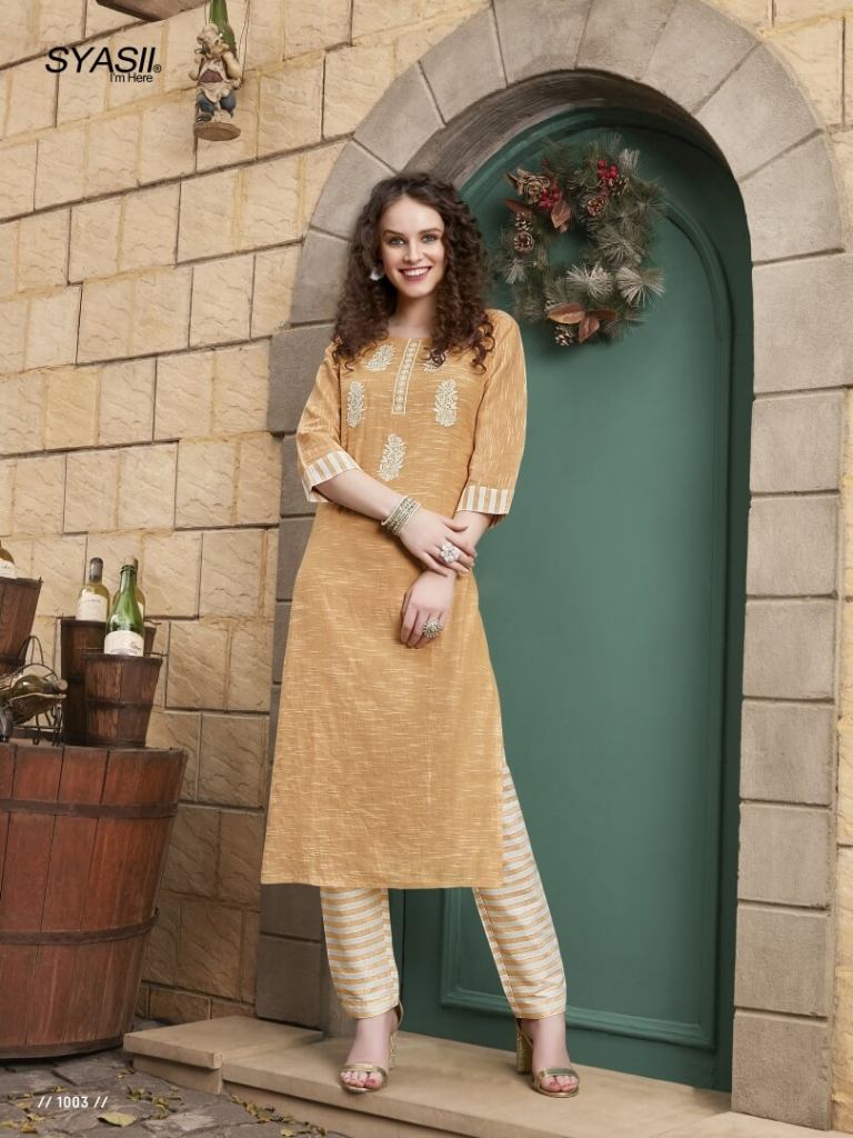 Syasii Thread Fancy Khadi Cotton Kurti With Bottom catalog, this catalog fabric is Pure Khadi Cotton With Embroidery and bottom fabric is Cotton Khadi | Length: 46" and design are different with fancywork also.