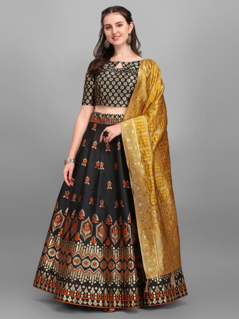 Lehenga: Brocade Lehengha With Inner Canvas Semi Stitch | Size Upto 42 | Length: 42 | Blouse: Silk Brocade Fabric 80 Mtr Approx | Dupatta: Banarasi Silk 24" Panna And 2.20 Cut