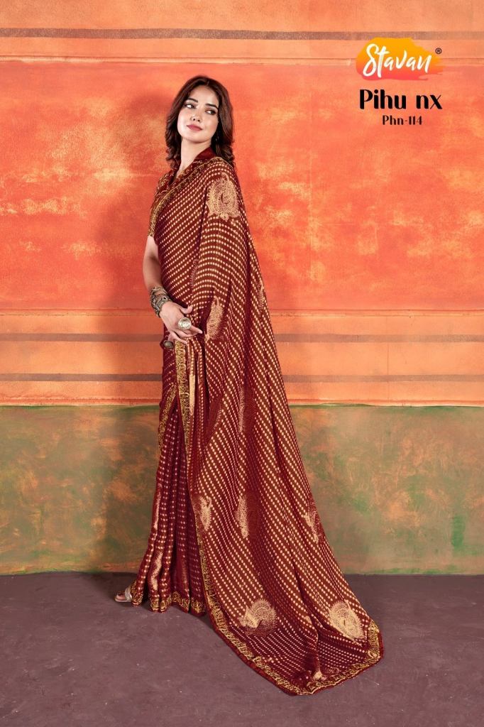 | NAME : | Traditional Stavan Pihu Nx Embroidery Chiffon Saree Set |