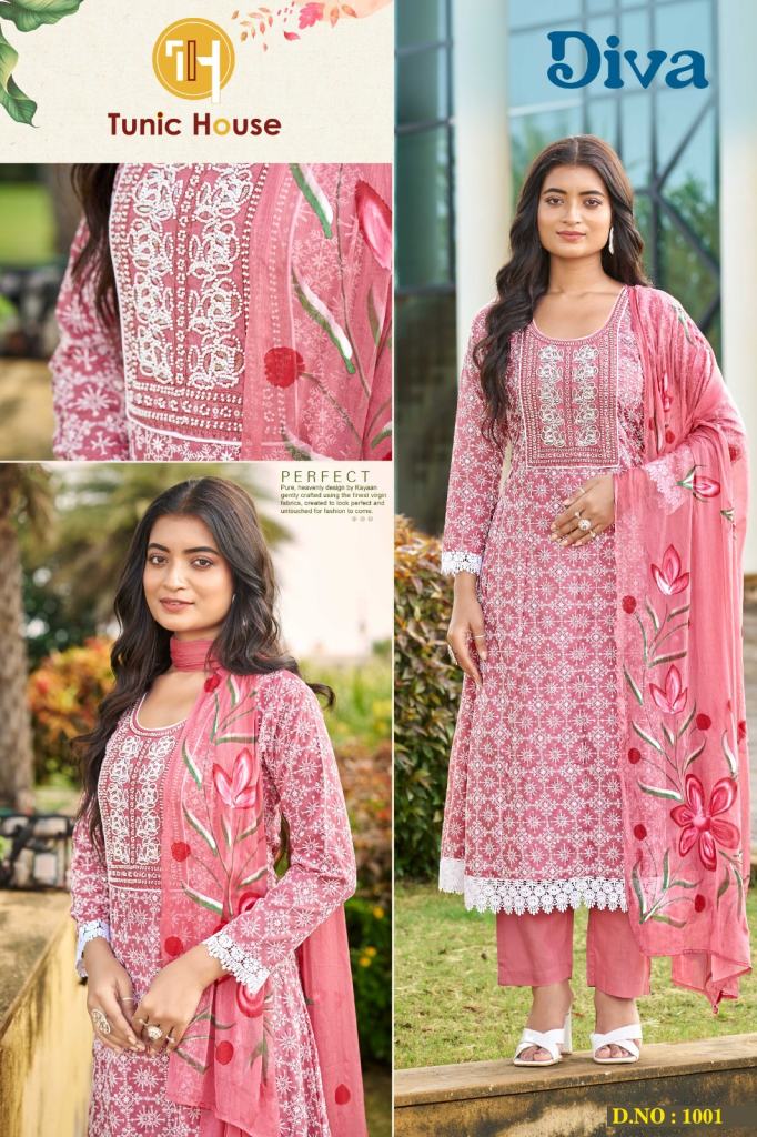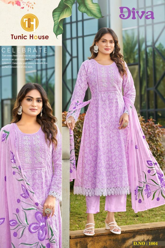 Tunic House Diva Cotton Shiffly Worked Kurti With Bottom Dupatta Full Catalog