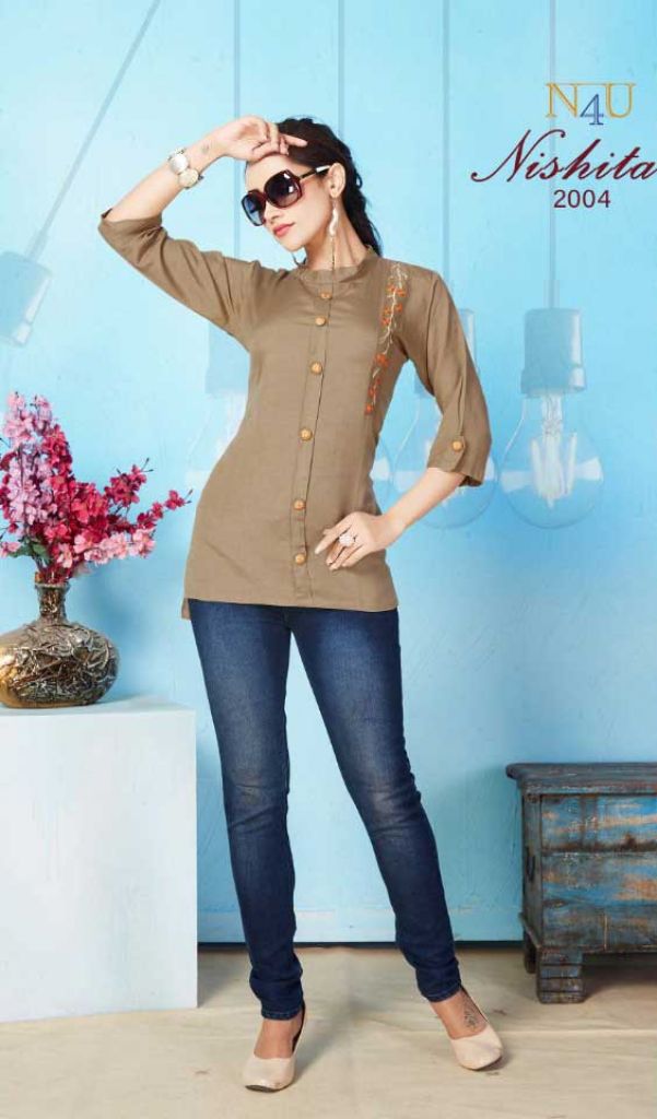 Tunic House Nishita Designer Rayon Short Top Kurti Catalog, this catalog fabric is Rayon with embroidery work and this catalog design is an amazing collection.