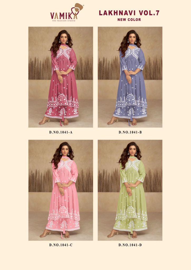 Vamika Lakhnavi Vol 7 New Color Rayon Threadwork Top Bottom And Dupatta Full Catalog