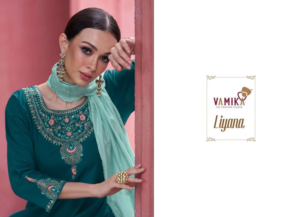 Vamika Liyana Viscose Vertican Silk Kurti Pant And Dupatta Collection Full Catalog