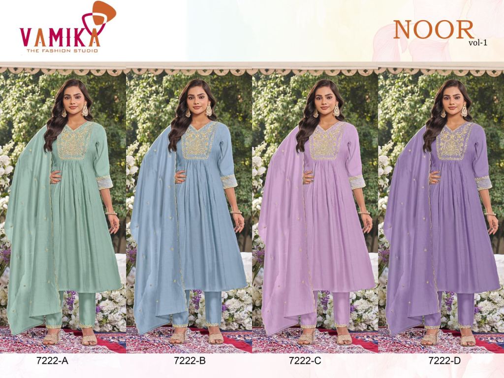 Vamika Noor Vol 1 Viscose With Jari Work Kurti Pant And Dupatta Full Catalog