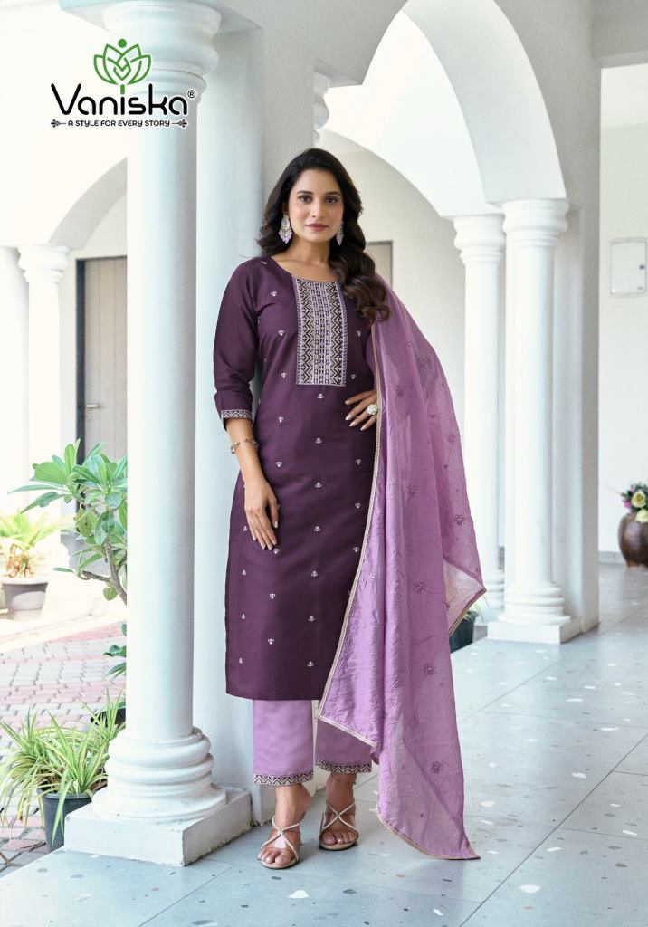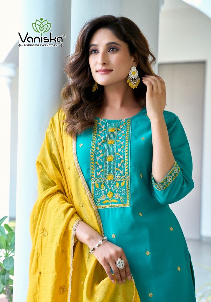 Vaniska Fiza Vol 5 Roman Silk Embroidery Work Kurti Pant And Dupatta Full Catalog