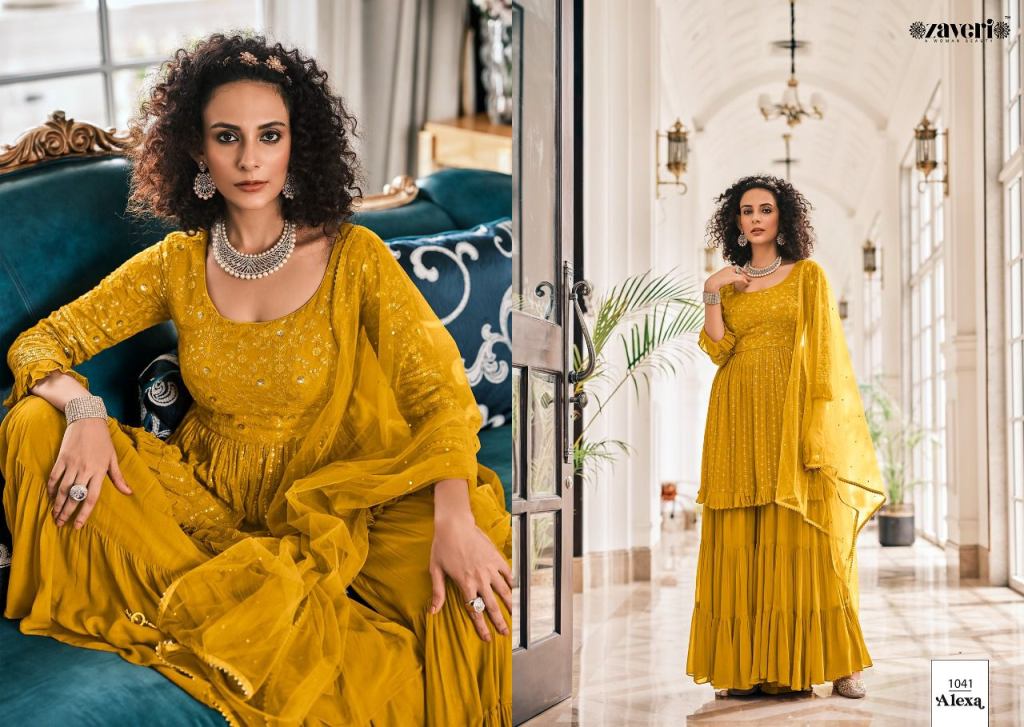 Zaveri Alexa vol 1 Designer Wedding Wear Sharara with top and dupatta catalog, this catalog Pure Viscose Georgette With Embroidery Work | Inner: American Crepe | Plazzo: Pure Viscose Georgette | Dupatta: Heavy Net.