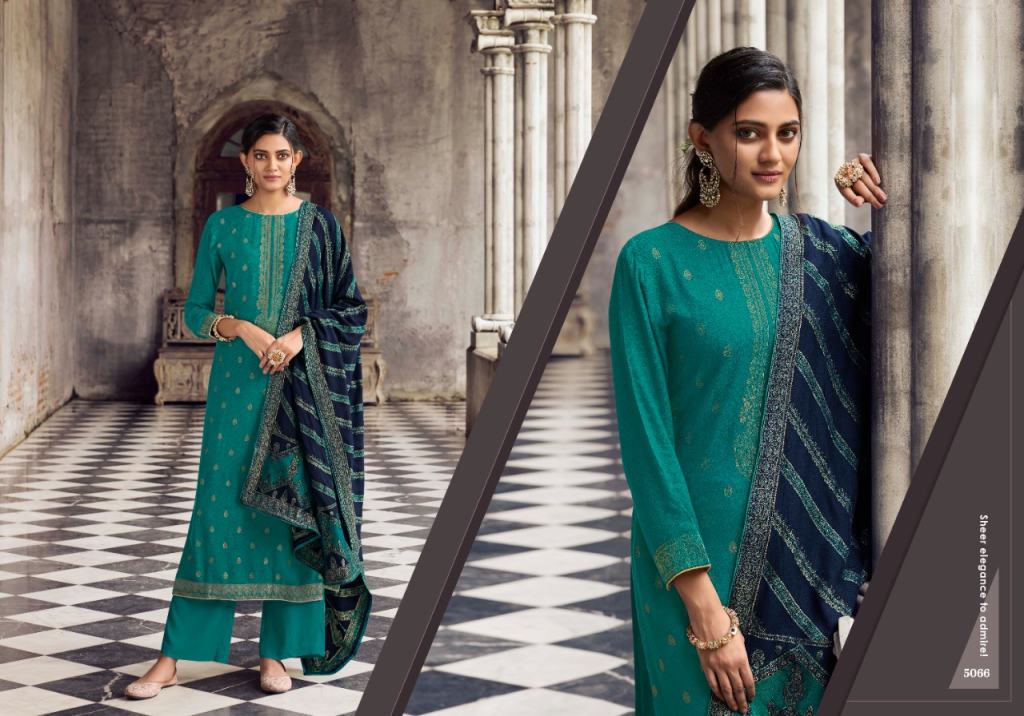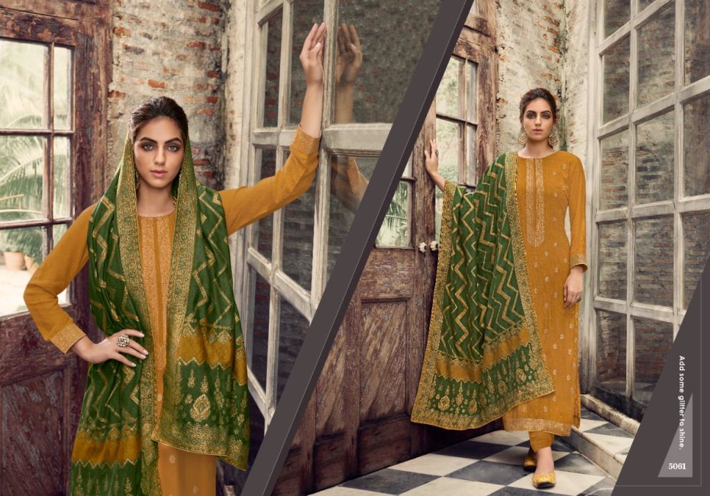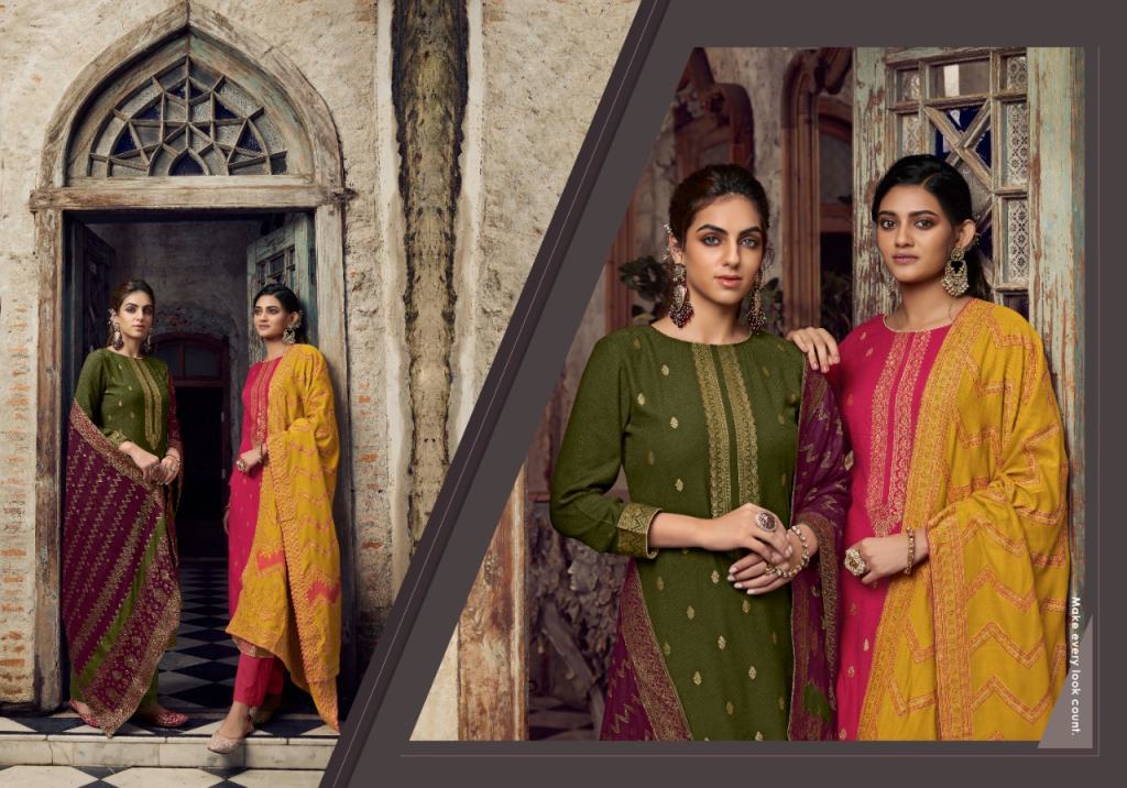 Zisa Charmy Inaayat Festive Wear Winter Pashmina Indian Salwar Suits, this catlog fabric is pure Pashmina Self Pattern Weaving Jacquard and Dupatta are Pure Pashmina Kashmiri Meena Weaving Dupatta with Bottom fabric is Pure Pashmina collection.