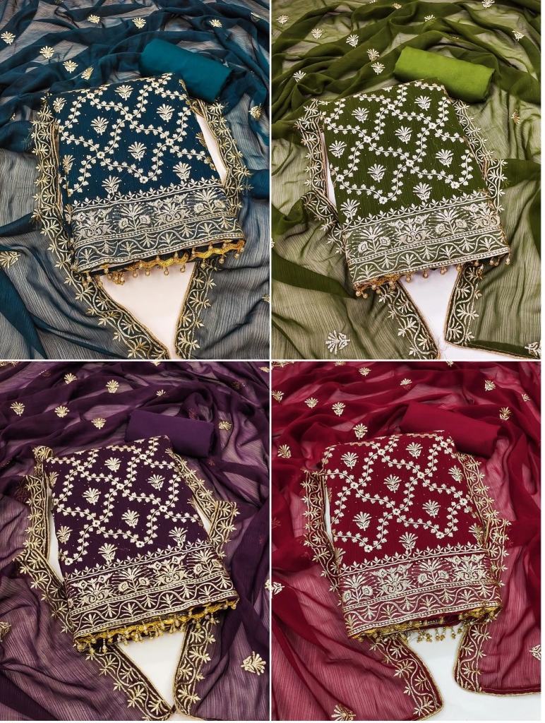 Shop Zomato 01 Georgette Embroidery Color Set Dress Material Collection Available At Wholesale Rate