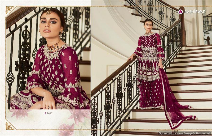 | NAME : | Aashirwad by Premium Sharara Designer Butterfly Net Salwar Suits |