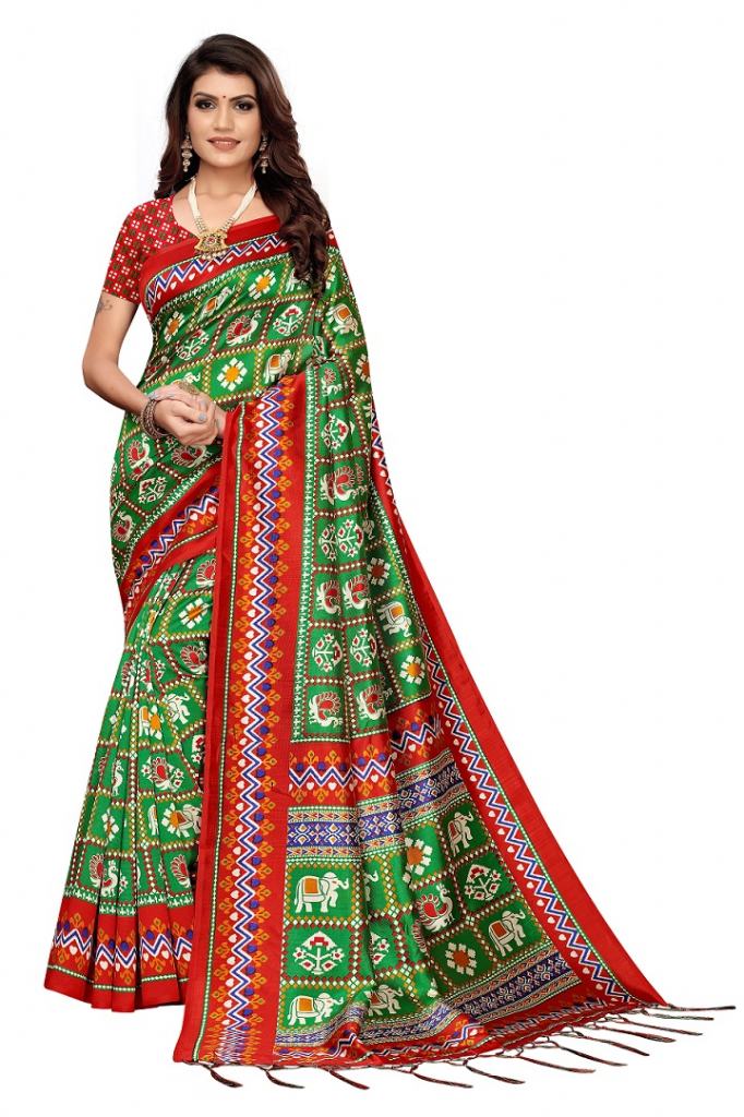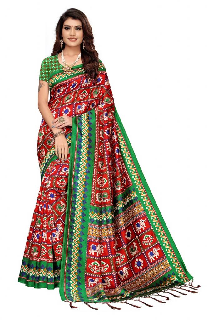 Alpha Reloaded 2 collection of art silk daily wear sarees with patola print design in different colours.