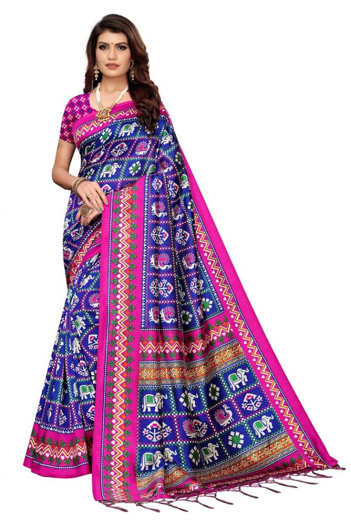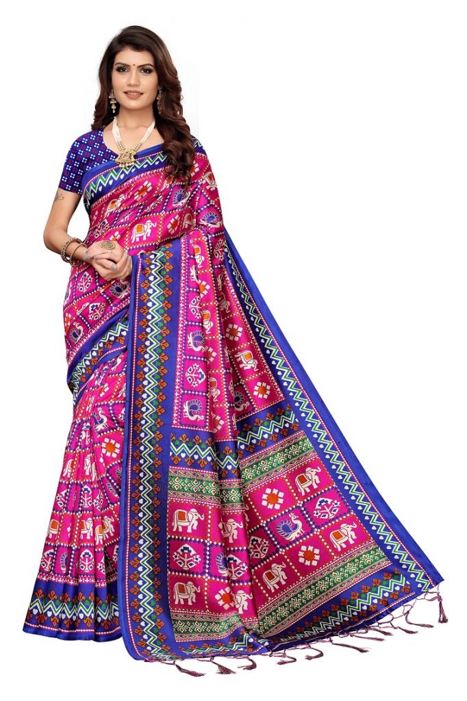 Alpha Reloaded 2 collection of art silk daily wear sarees with patola print design in different colours.Unstitched blouse comes with the saree. This collection available at wholesale rate.