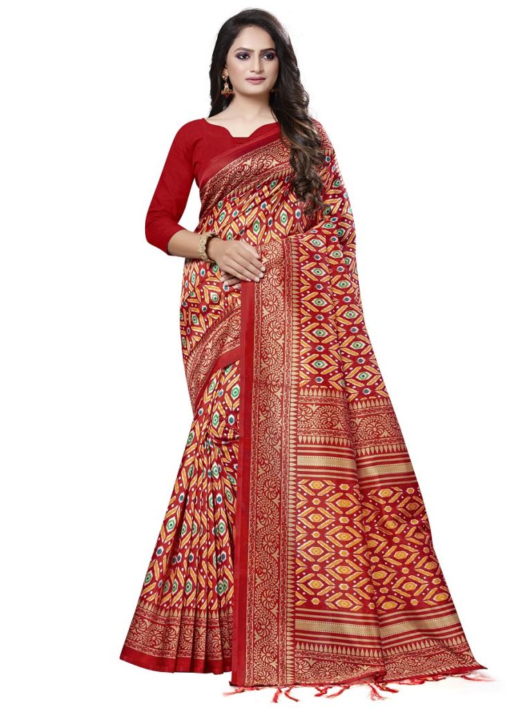Alpha reloaded art silk casual wear sarees with patola print design in different colours.