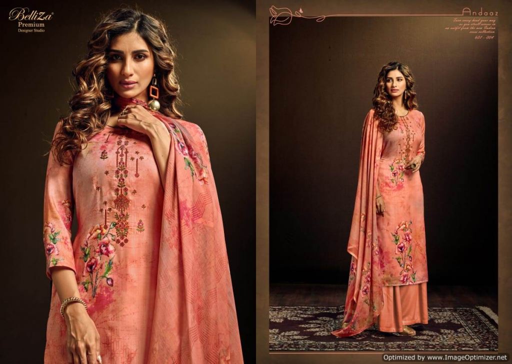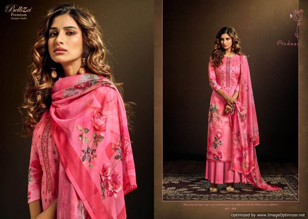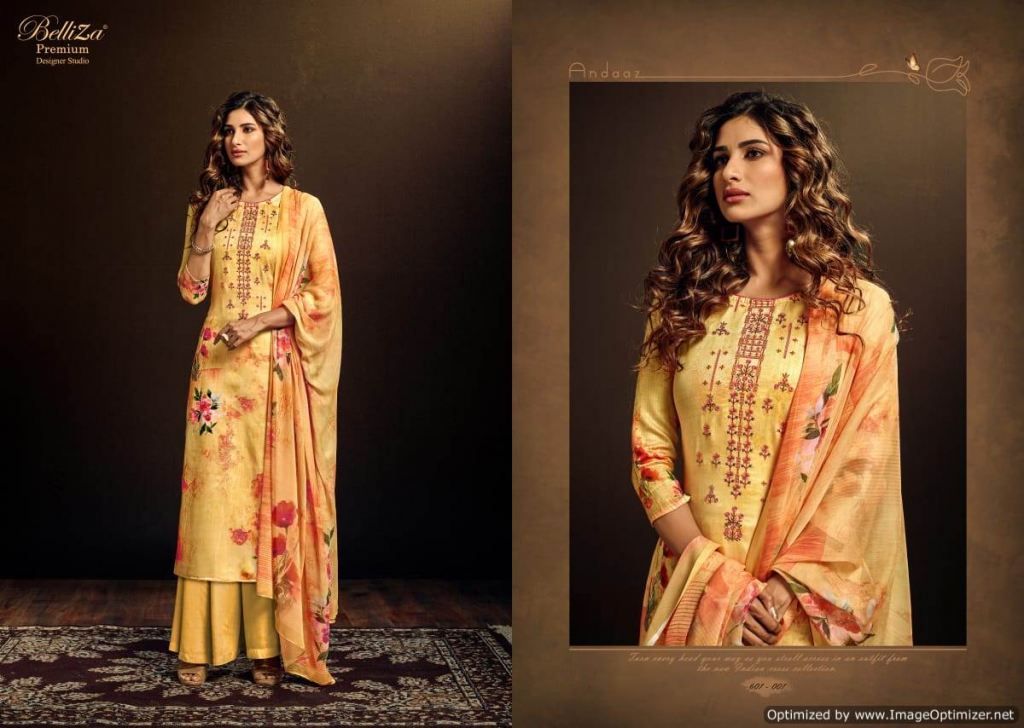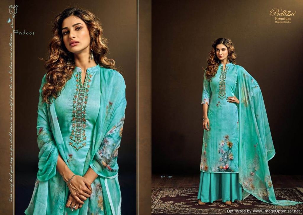 Belliza Present Andaaz Festive Wear Collection, this catalog are pair the same color with designs are Original Digital Print with Beautiful Fancy Embroidery work.