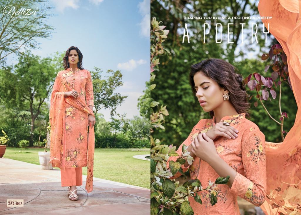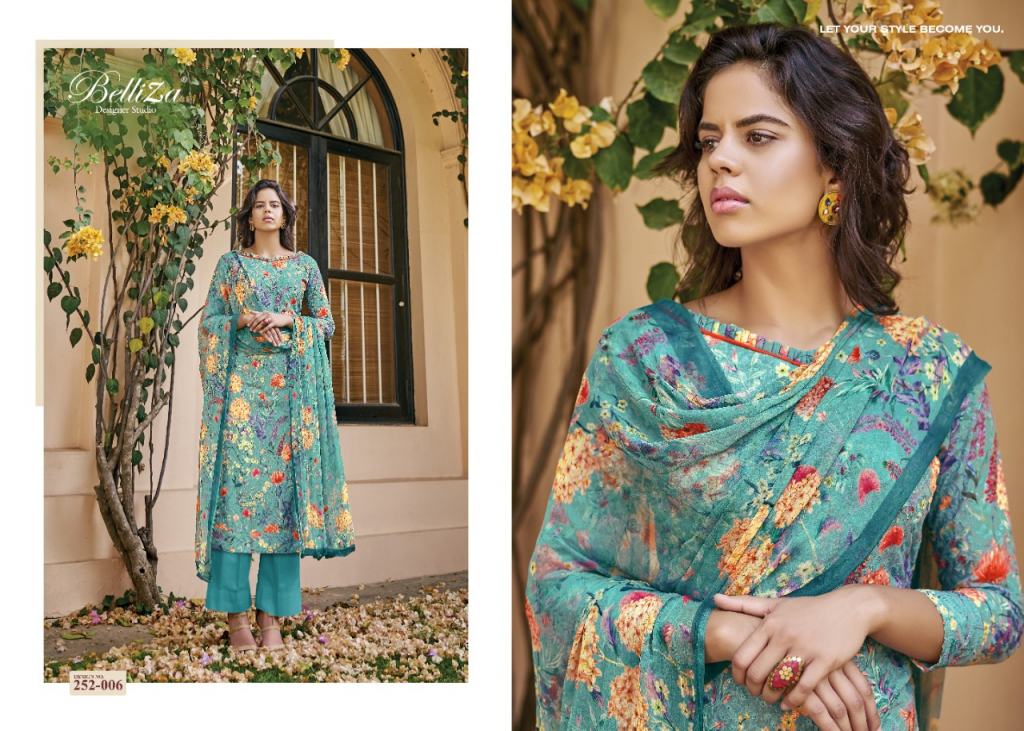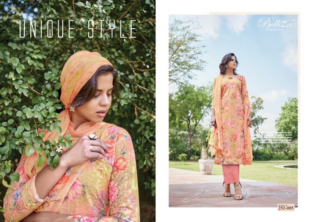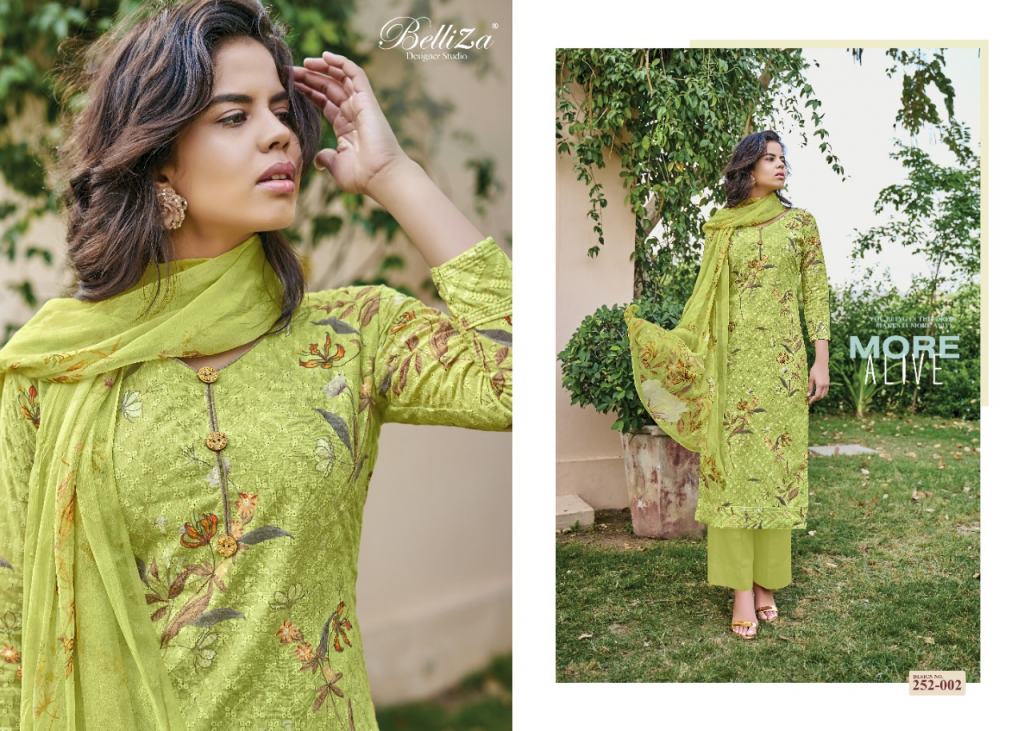 Belliza Present Isabelle dress material Catalogue. this dress material is Pure cotton with designs that are digital print like with heavy Embroidery.
