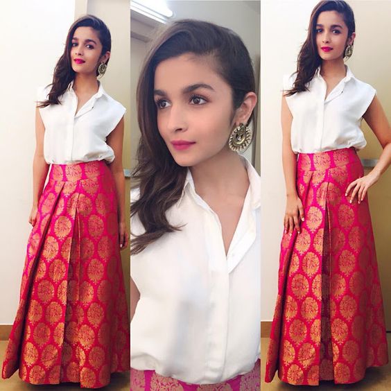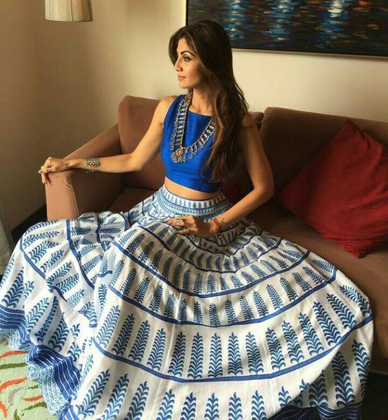 Flared skirts when paired with a crop top add a twist to your entire outfit. Go for a statement lehengas with a western top like a crisp white shirt, cape or a simple crop top.