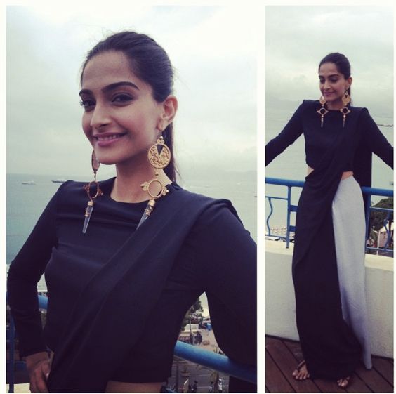 Drape and style your saree in a totally different way. Look effotlesly stylish and glaomurous by wearing your saree with a crop top just like a runway model. And standing out from the rest of the people is just an added bonus. You can also take some inspiration from Sonam Kapoor in Saree to create a style statement. Crop tops are the best and a versatile option that can be even be teamed with a heavy lehenga choli to create a gorgeous fusion indo-western outfit.