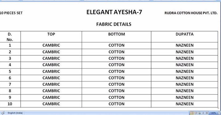 | TYPE : | COTTON DRESS MATERIAL WHOLESALE |