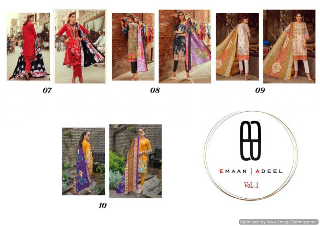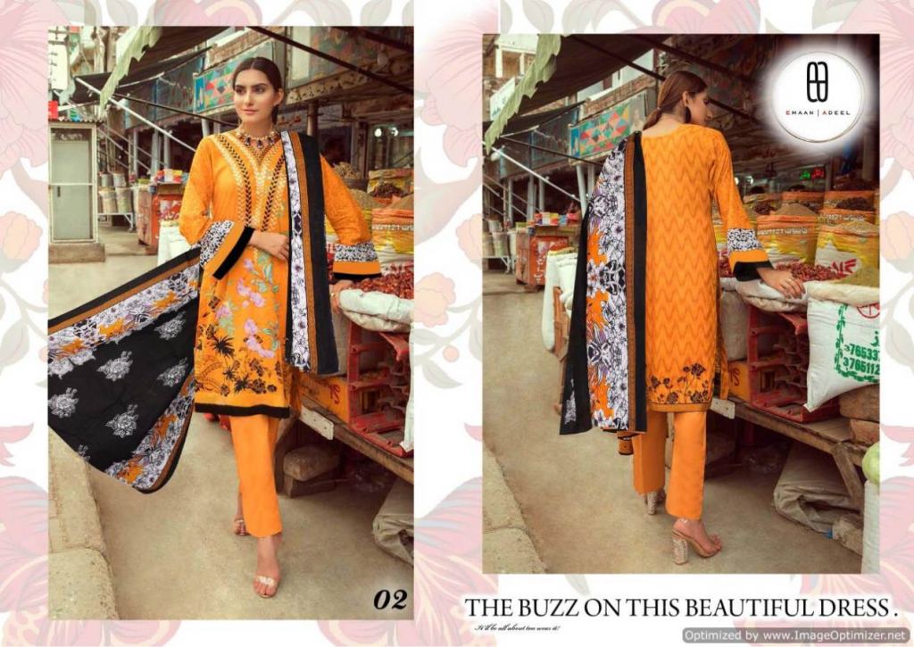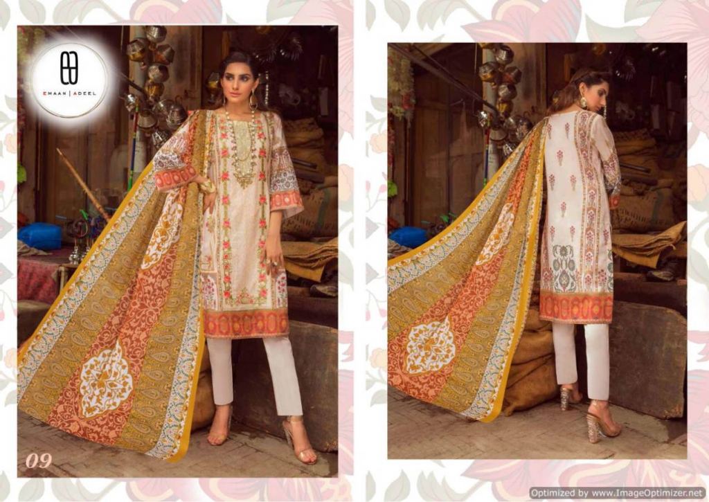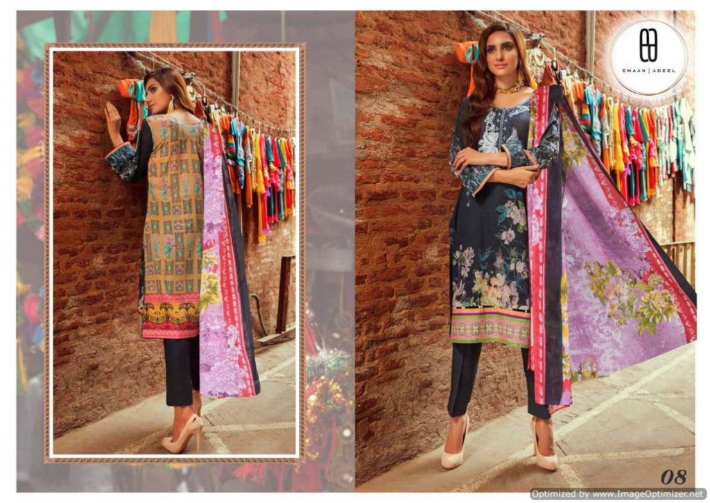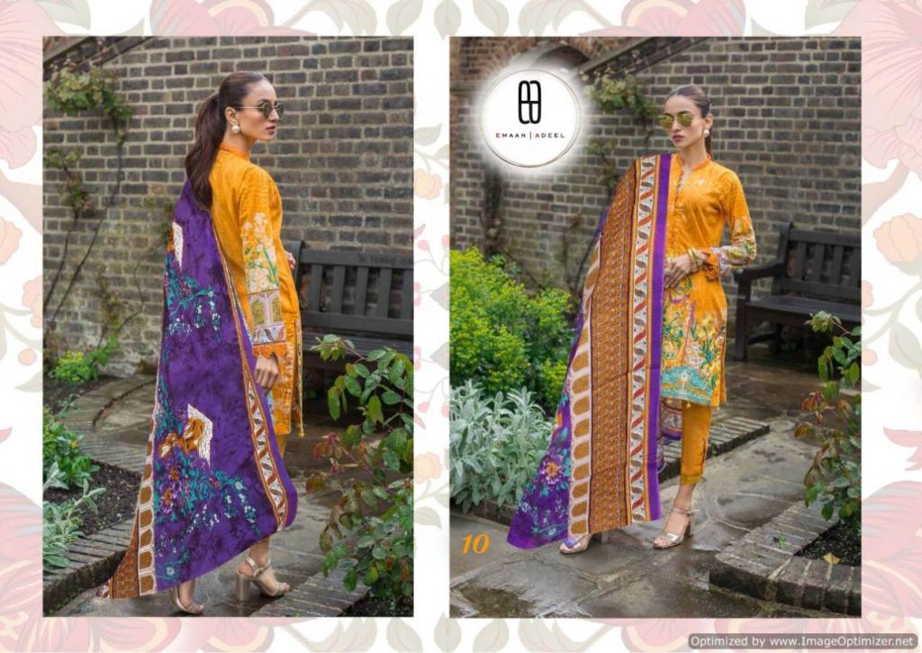 Emaan Adeel 1 collection of pure lawn cotton pakistani suits with different printed designs in different colours. Pure lawn cotton 2.25mtr top with 2.00mtr bottom and 2.25mtr dupatta. This catalogue is available at wholesale rate.