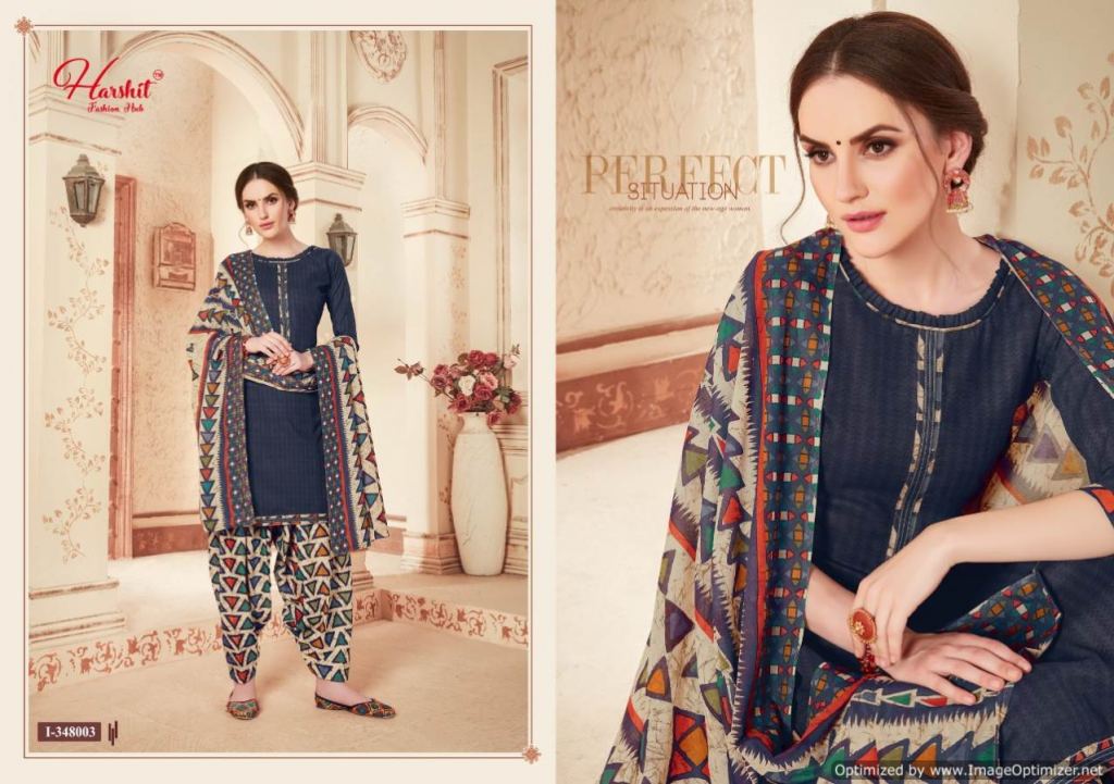 Harshit Present Patiyala Queen Dress material collection. this catalogue is dress material Pure superior cotton with self-print.