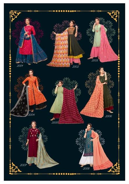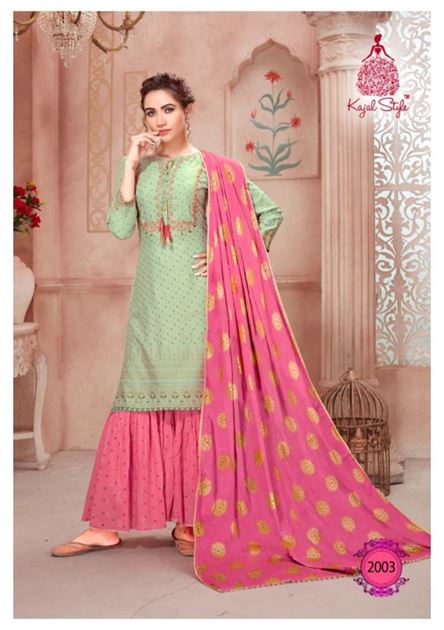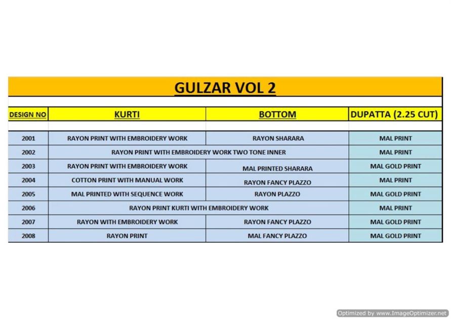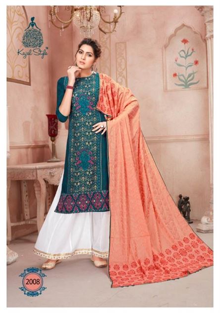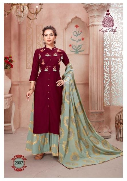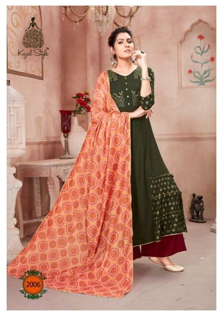 Kajal Style by Gulzar vol 2 Heavy Rayon Ready Made Wear. this catalogue is the texture in rayon. this assortment is all out Eight various structures and hues. this collection is structured like a portion of the print and a portion of the normal example. this catalogue are top rayon or cotton or mal print with heavy Embroidery work, bottom are rayon or mal print, with dupatta are mal print or mal gold print.