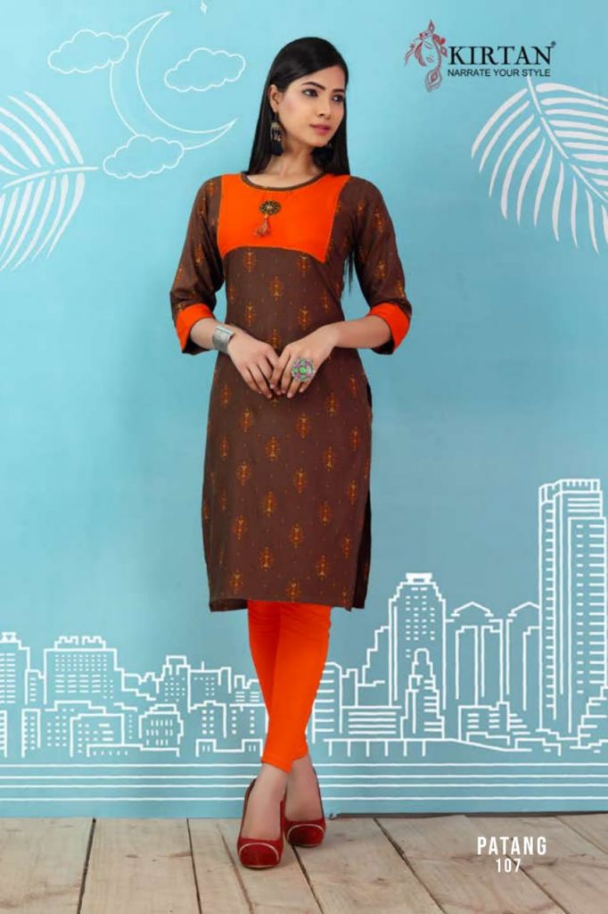 Kirtan Patang collection of rayon casual wear kurtis with different printed design and colours.This collection available at wholesale rate.