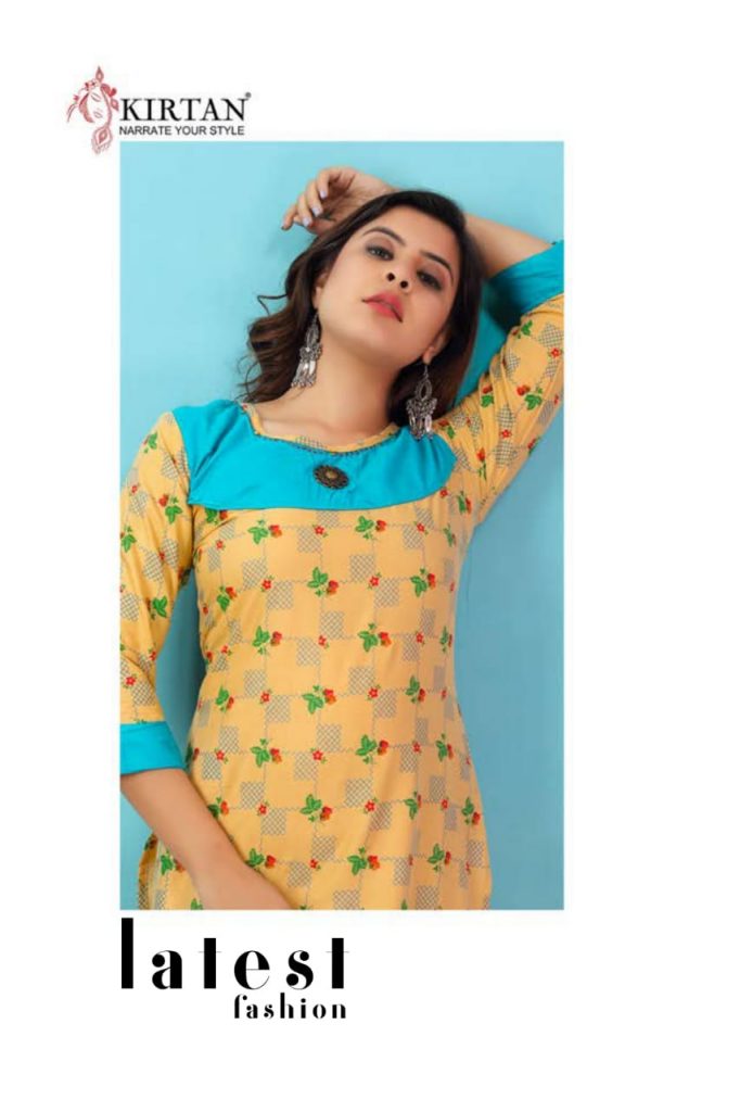 Kirtan Patang collection of rayon casual wear kurtis with different printed design and colours.