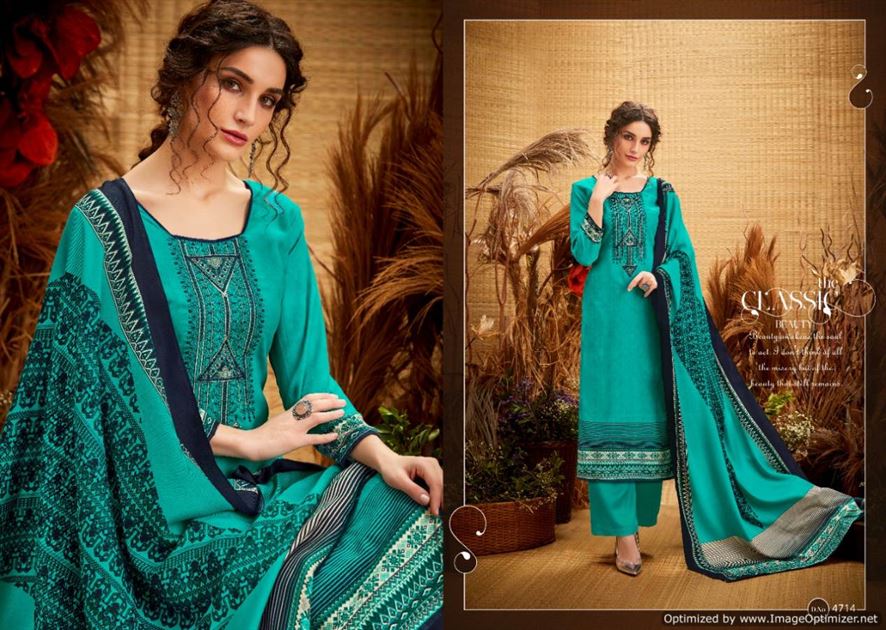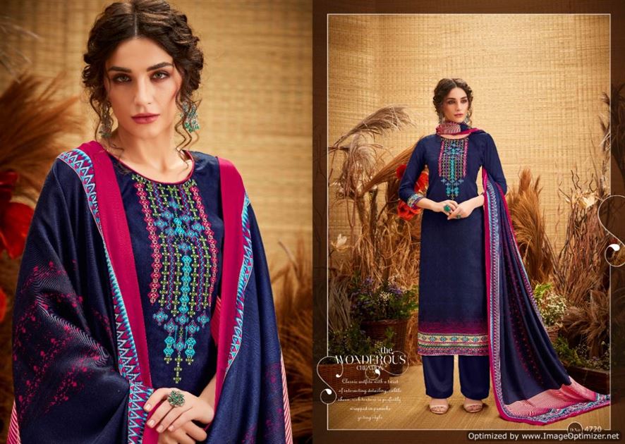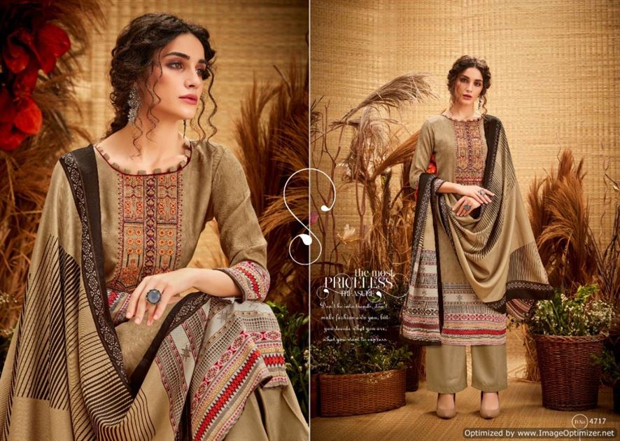 Levisha by Pakiza vol 2 casual wear Printed Dress Material catalog. this catalog are the fabric in Pure Pashmina. this catalog are total in Eight in designs. this catalog are very fine look with types of winter season collection. this catalogue is top pure pashmina with inside some of the designs, bottom are plain with pant types and dupatta are also mix in colour and inside some of the designs.