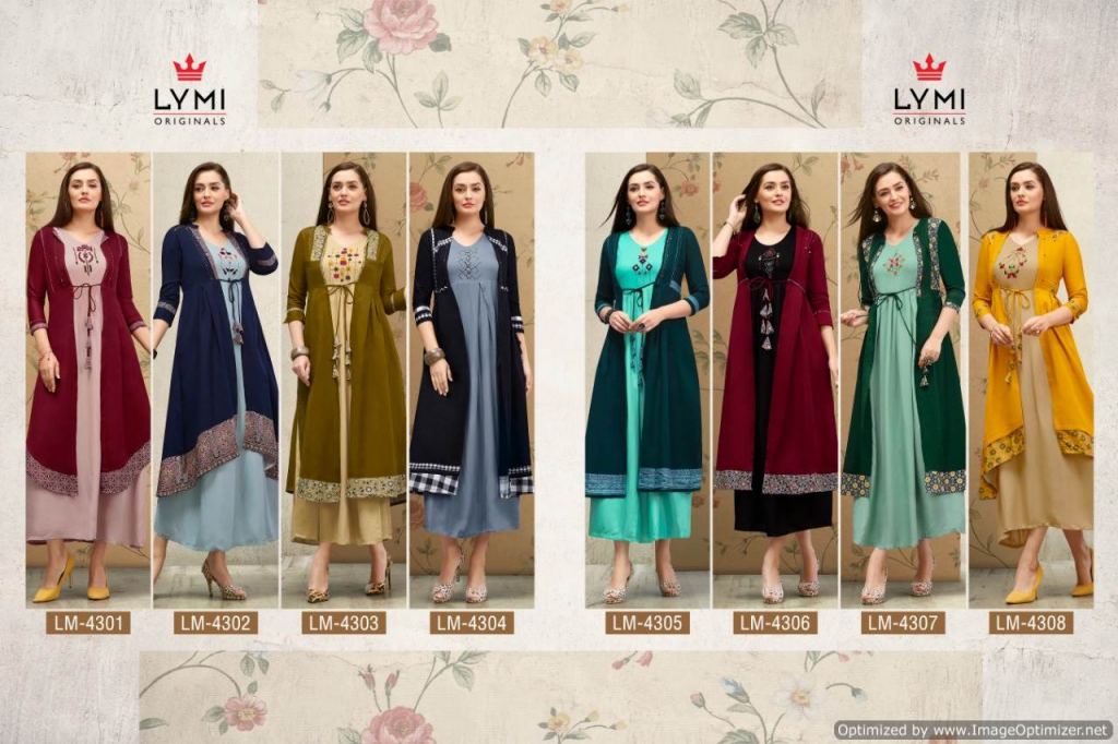 Lymi Present Hall Mark Kurti With Shrug collection, this catalogue are Kurtis very fine look and designs are handwork.