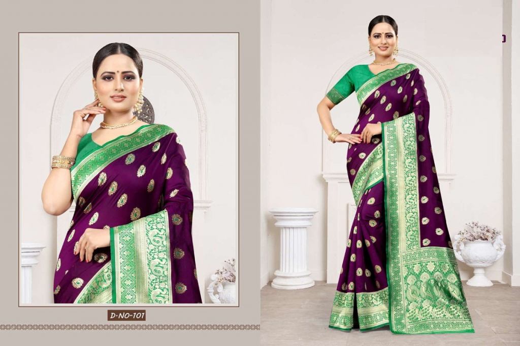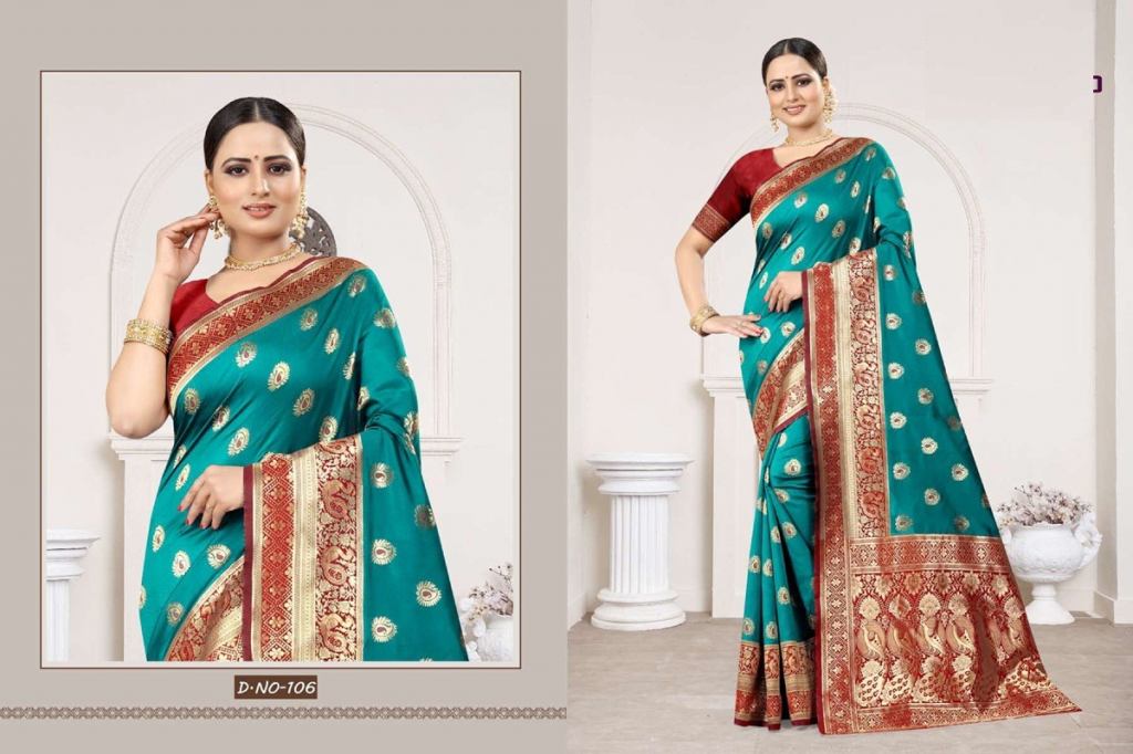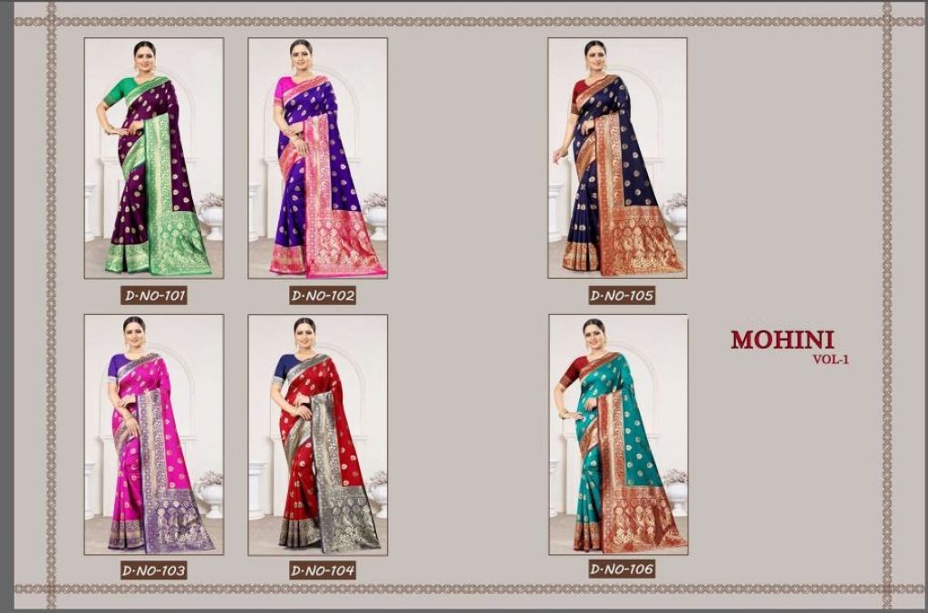 Mohini 1 collection of heavy banarasi silk sarees with gotta design and heavy border and pallu in different colours.