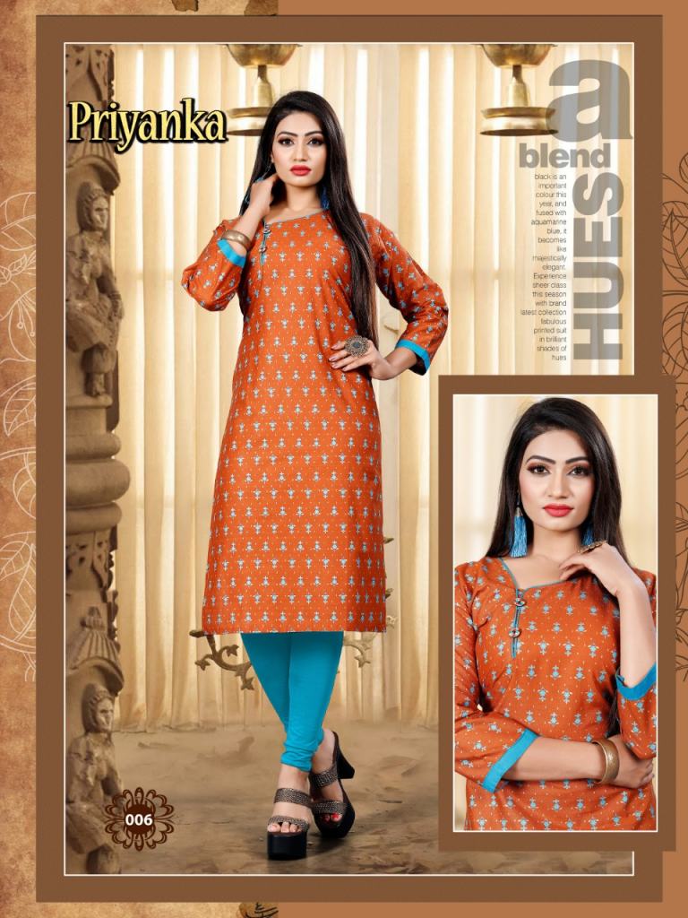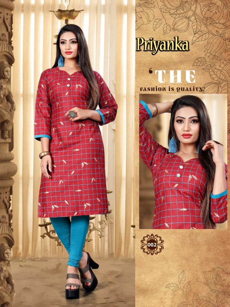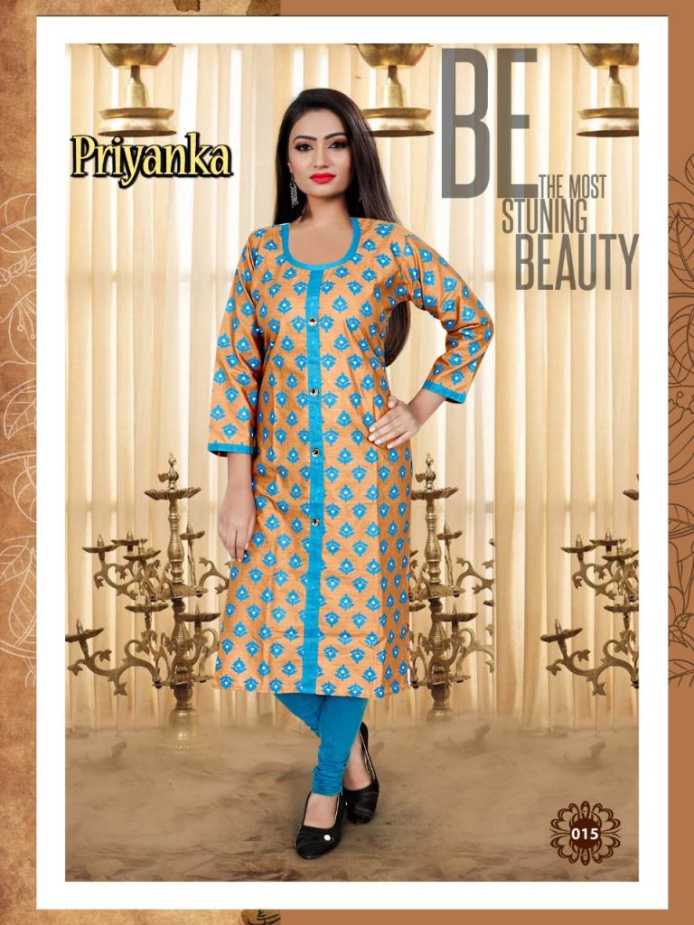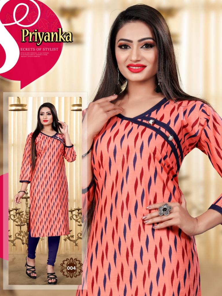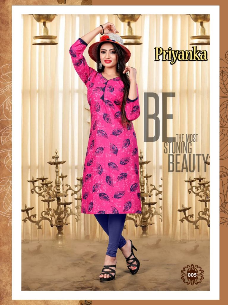 Priyanka Pure Cotton Printed Kurtis collection, this catalogue is Kurtis one types of casual wear and designs are simple to look.