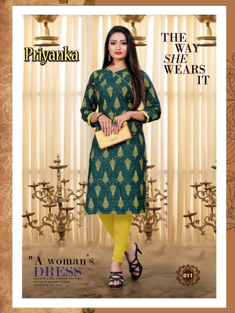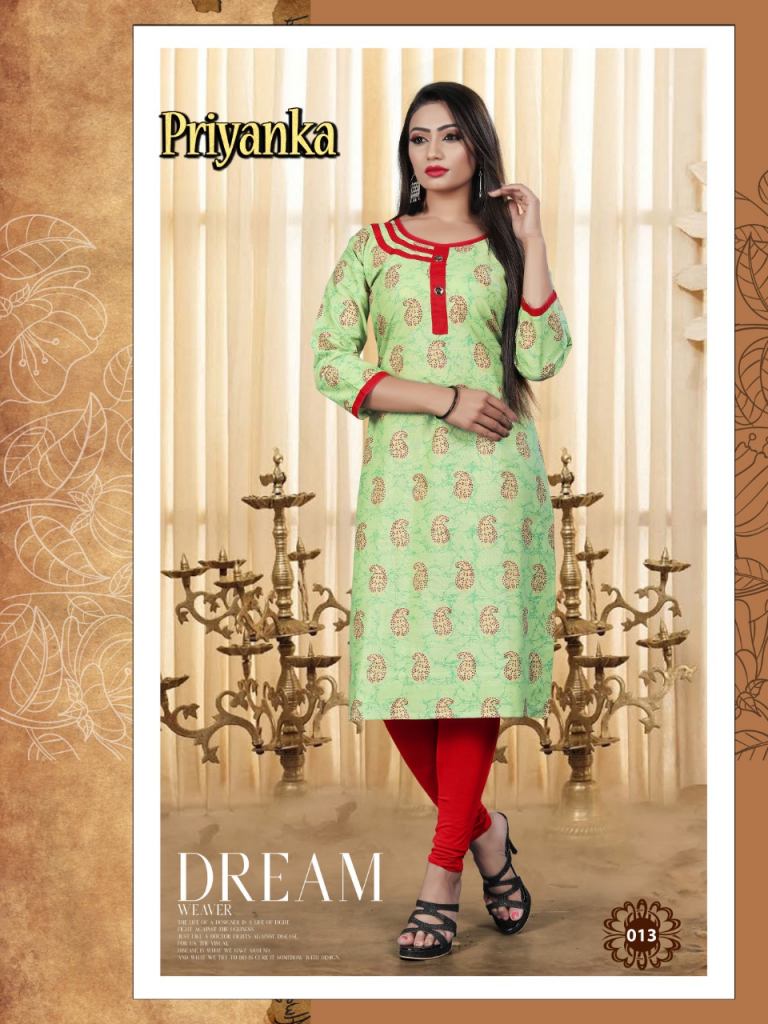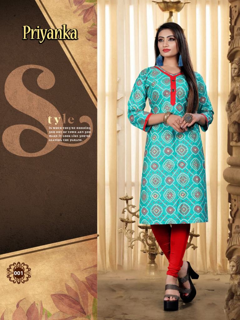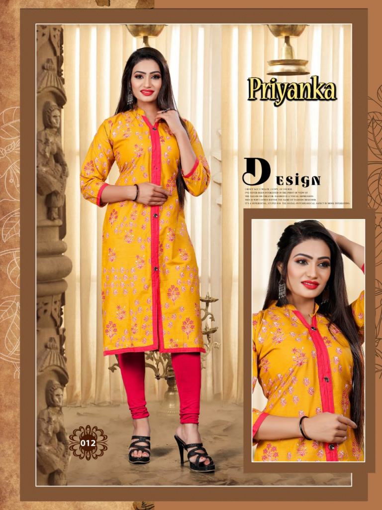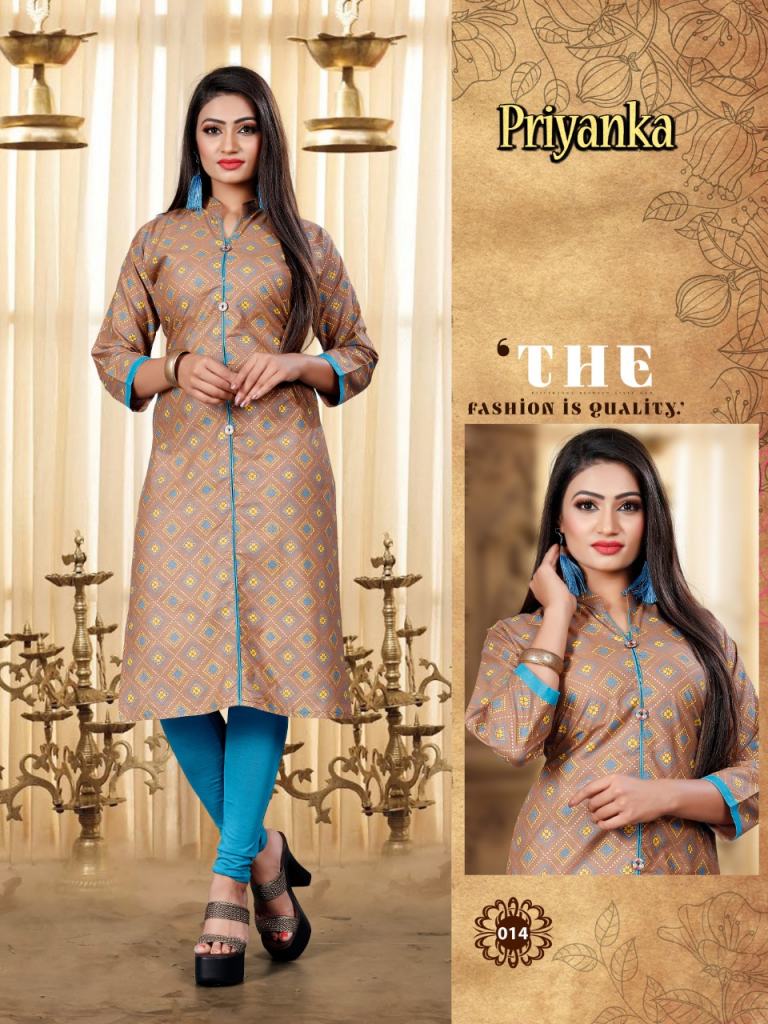 Priyanka Pure Cotton Printed Kurtis collection, this catalogue is Kurtis one types of casual wear and designs are simple to look.