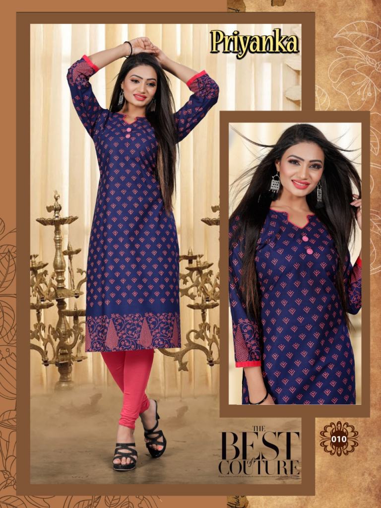 Priyanka Pure Cotton Printed Kurtis collection. This index is in the texture of Cotton. this assortment is a sum of different Fifteen various Designs and shading. this list all are distinctive shading and designs too. this catalogue is Kurtis cotton in the fabric with designs are full of the part.