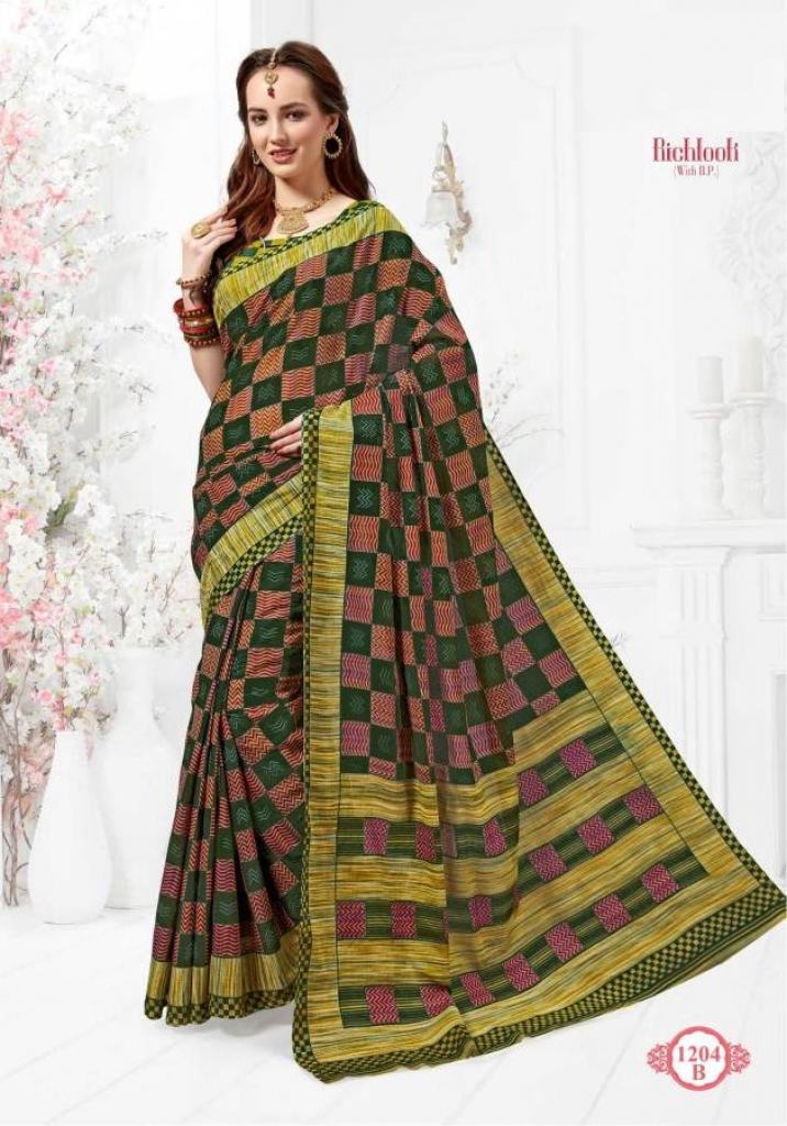 RichLook 12 collection of pure cotton casual wear sarees with different printed design in different colours. This collection is available at wholesale rate.