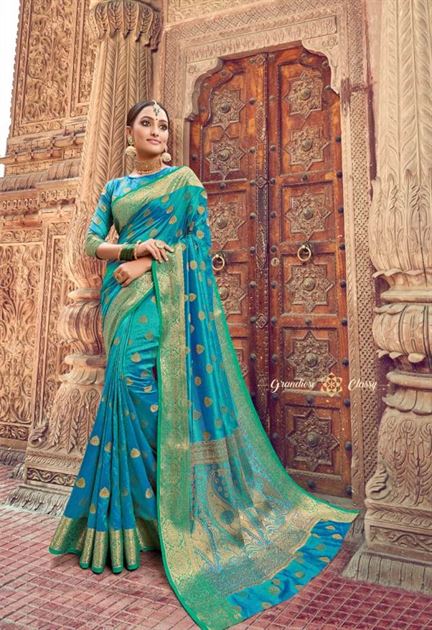 Shangrila by Alankaar Festive Wear Sarees catalogue. this catalogue is the fabric in Weaving Zari Silk. this catalogue is total of ten in designs. this catalogue is very fine fabric with types of wedding wear types sarees catalogue. this catalogue are sarees are single colour but inside zari like designs. this catalogue is sarees inside designs all are altered.