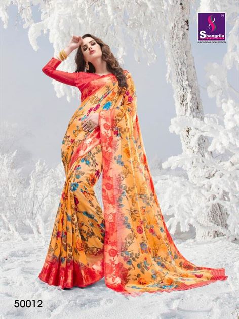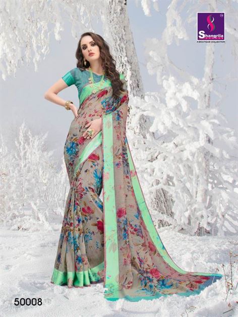 Shangrila present Jura Cotton Printed Linen Cotton Saree Collection. this index are texture in Linen Cotton. with sarees are plans print that are fine bloom types print, and print distinctive shading so coordinate with together. furthermore, sarees are fringe that are ribbon like outskirt. available at wholesale rate.