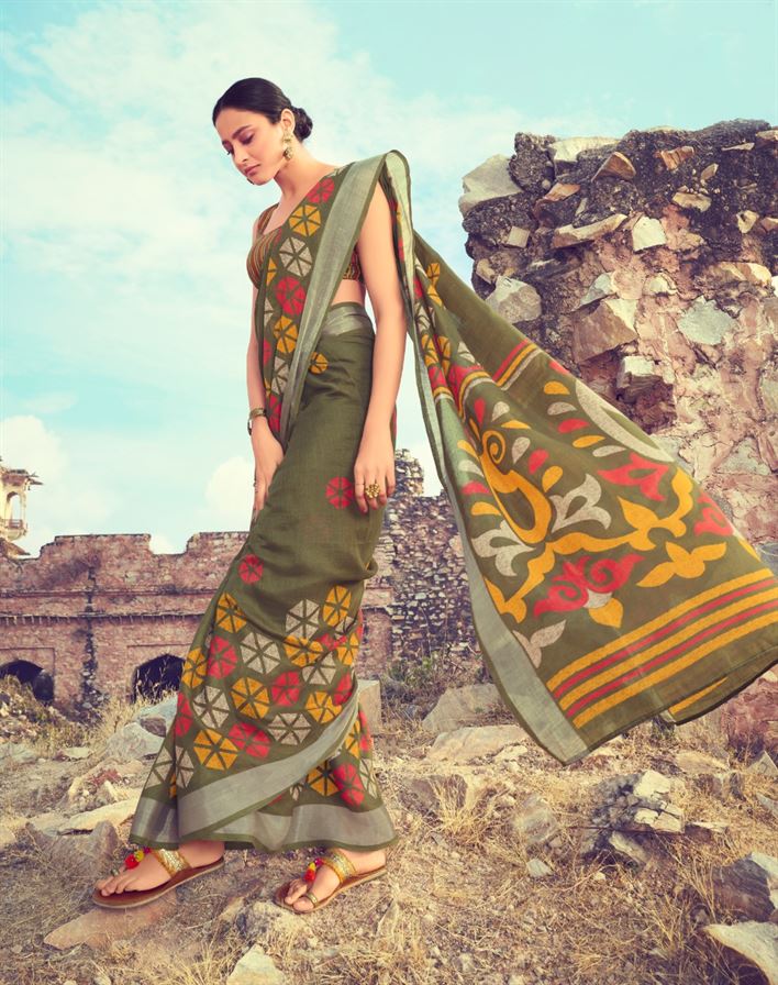 Shangrila present Vionna festival wear sarees catalogue. this catalogue is the texture in Pure soft linen. this assortment is all out 12 various structures and hues. this collection is structured like a portion of the print and a portion of the normal example. this sarees are Pure soft linen fabric with designer handloom print with weaving border. and blouse is the same as a sarees color and that pattern very attractive and color also.