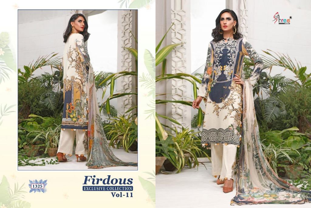 Shree Firdous exclusive collection 11 of jam cotton pakistani suit with different digital print and embroidery work designs in different colours.