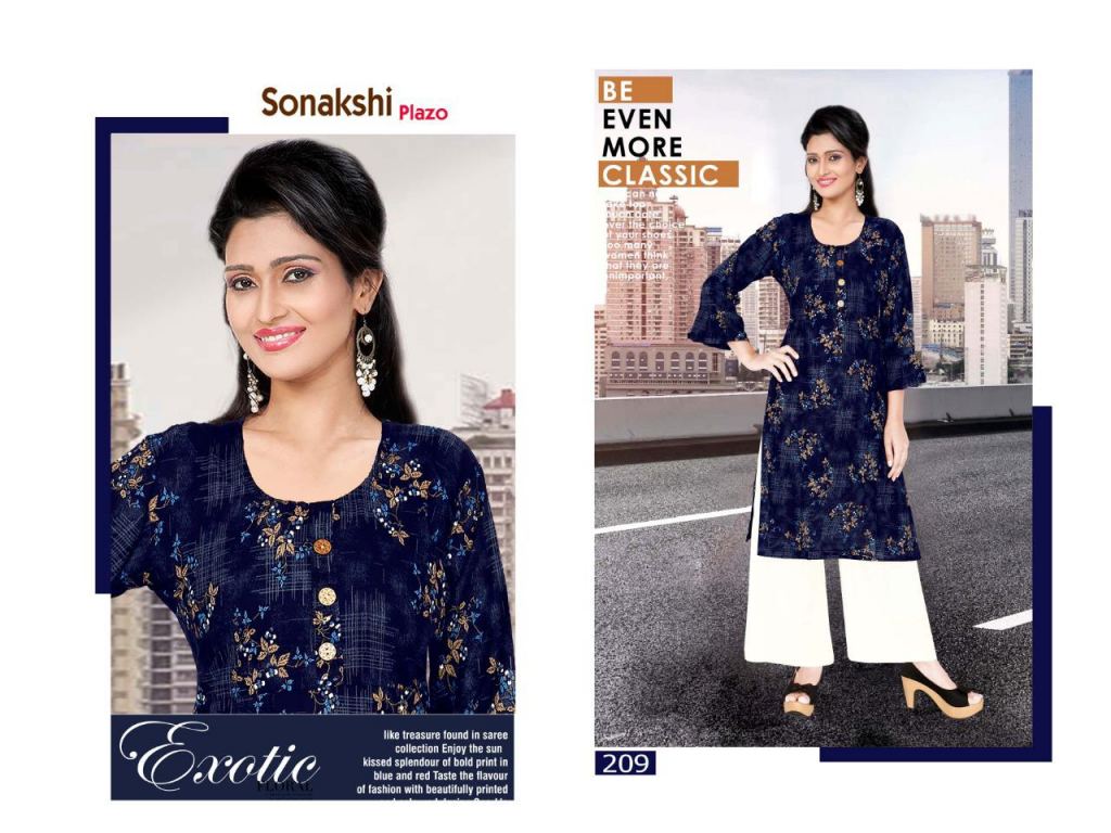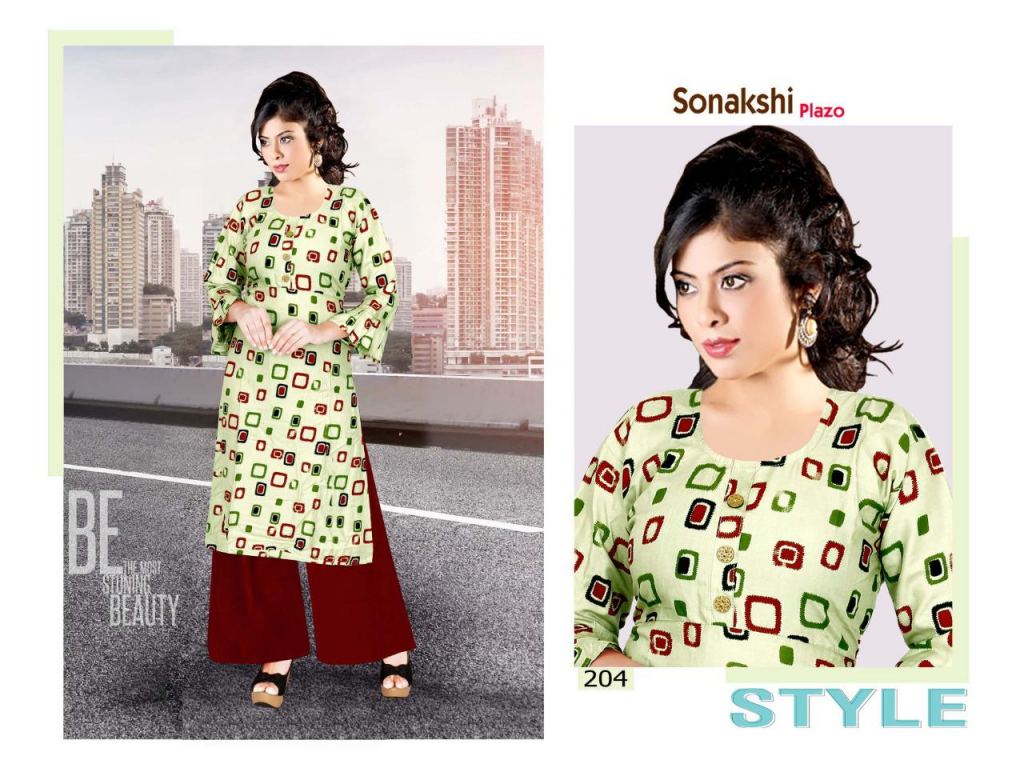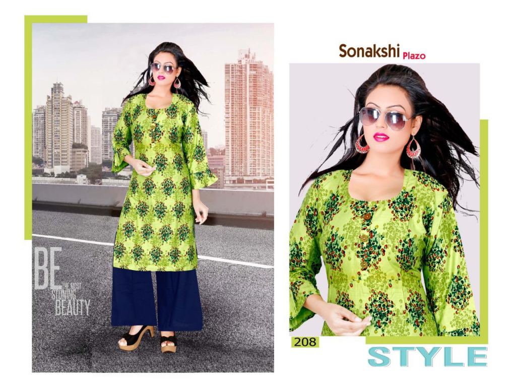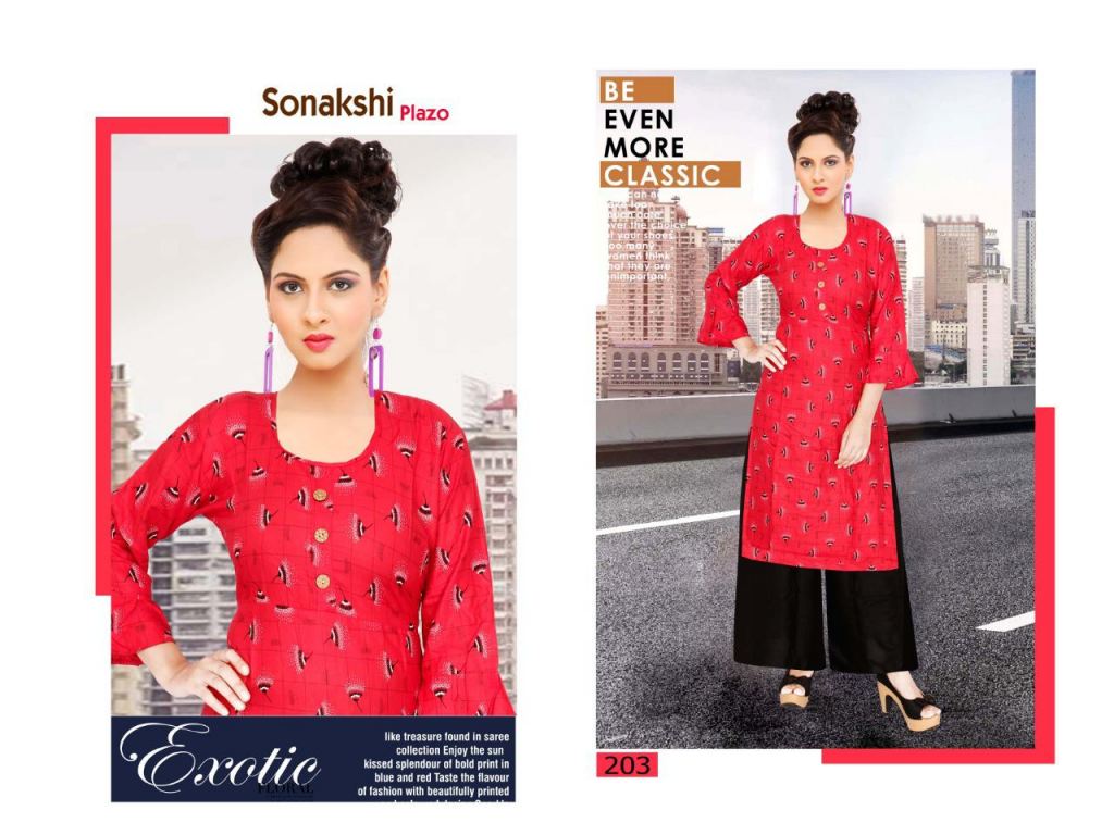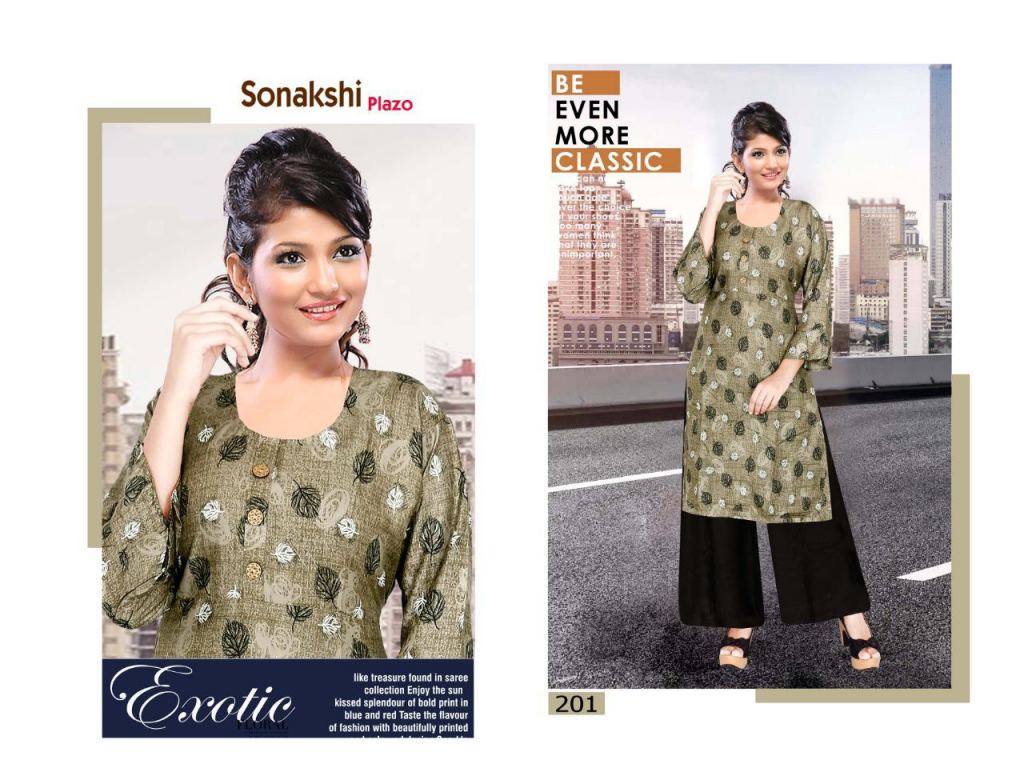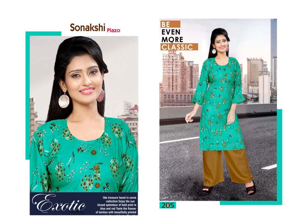 Trendy Sonakshi plazo 2 collection of rayon kurti with plazo in different designs and colours.