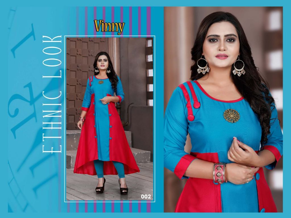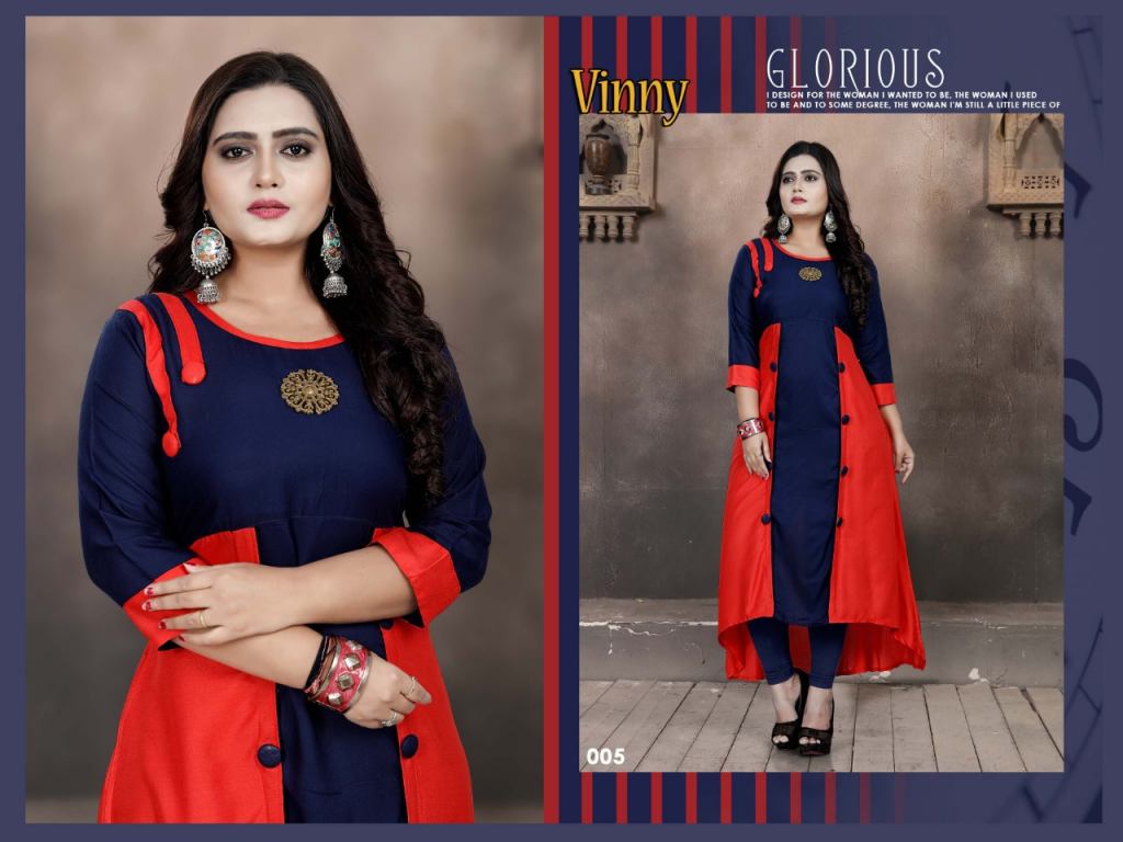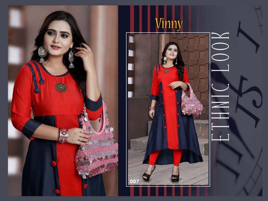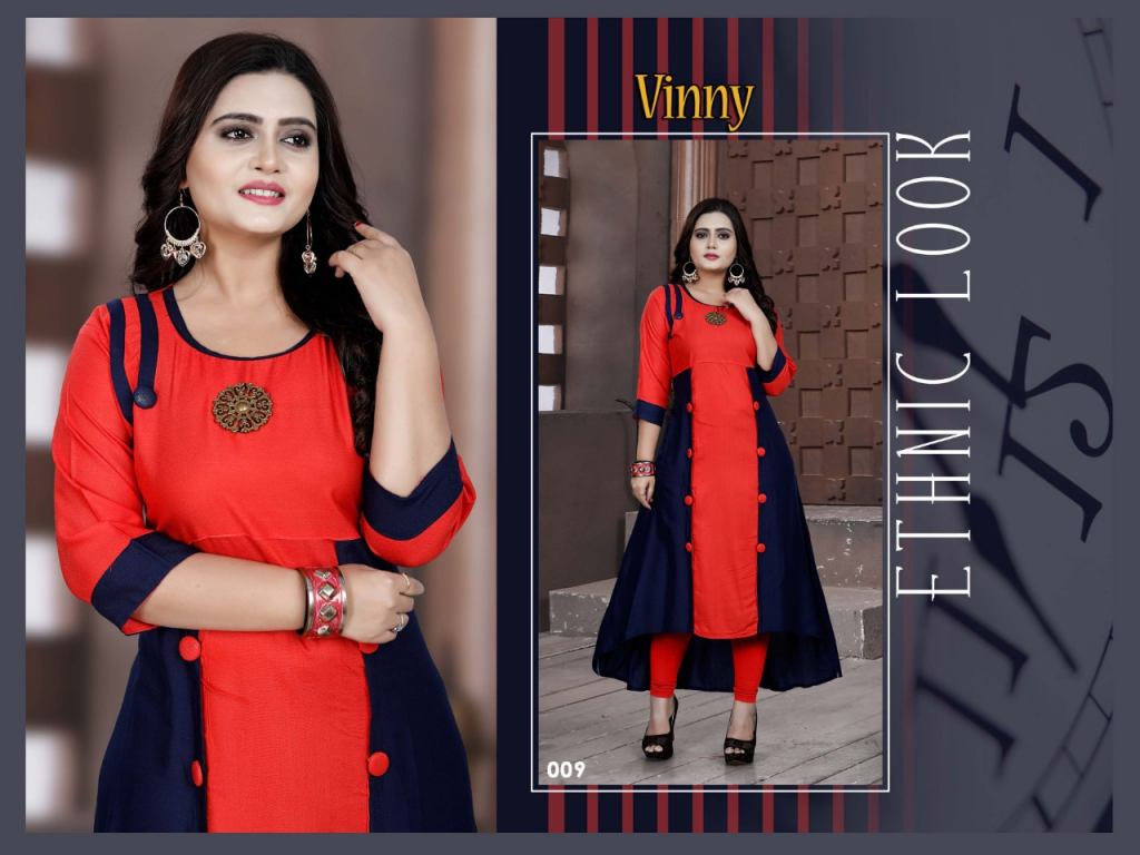 Vinny designer Kurtis Catalogue. this catalogue are Kurtis long Anarkali types look with designs are same and colour will be different.